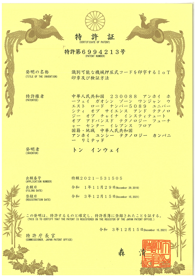 • 一種可識別機械壓動打碼的物聯網印章及驗證方法